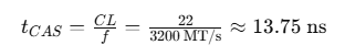 W praktyce sama wartość CL nie mówi wszystkiego — liczy się realne opóźnienie w czasie (ns), które zależy też od częstotliwości. Dla DDR4 3200 MHz CL22 wygląda to tak: