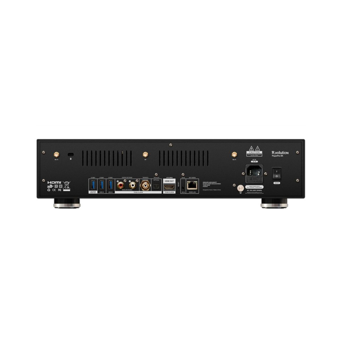 R_volution PlayerOne 8K obsługuje większość cyfrowych formatów audio i wideo, w tym najnowocześniejsze standardy HDR, takie jak Dolby Vision i HDR10+, prawie wszystkie najnowsze formaty plików wideo, w tym pliki MKV, BD i UHD ISO z pełnym i szybkim menu BD/UHD, Kodek wideo AV-1 i HEVC z miliardem kolorów, wyjściem HDMI 2.1 8K 60p HDR, plikami audio o wysokiej rozdzielczości, takimi jak DSD, AIFF, FLAC i ALAC, a także szeroką, solidną obudową, Auro3D, Dolby Atmos i DTS:X aby uzyskać jak najlepsze wrażenia z kina domowego.