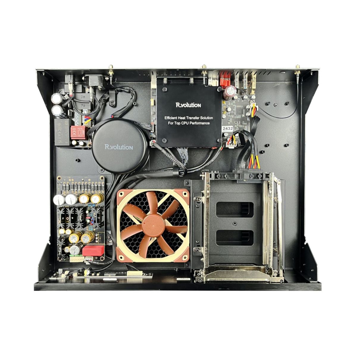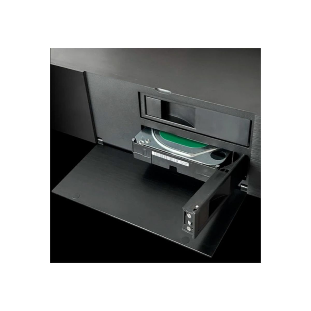 R_volution PlayerPro 8K został wyposażony w dwie wewnętrzne zatoki na dyski 3,5″ SATA z obsługą wymiany „na gorąco” (hot-swap). Urządzenie pozwala na instalację dysków o łącznej pojemności nawet 64 TB, co umożliwia lokalne przechowywanie ogromnych kolekcji multimediów – do około 1600 filmów Blu-ray lub 800 filmów 4K Ultra HD Blu-ray w jakości bit-perfect bezpośrednio wewnątrz odtwarzacza.