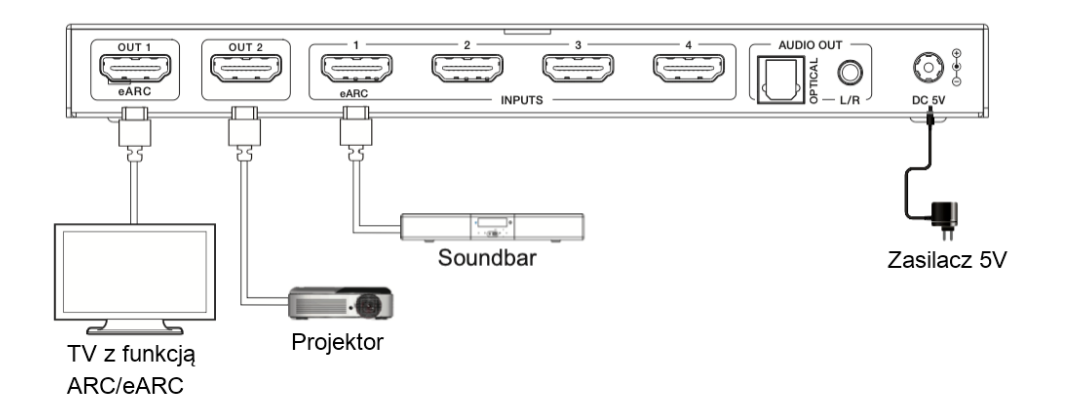 ☆ Porty INPUT 1 i OUT 1 obsługują zwrotny sygnał audio ARC/eARC